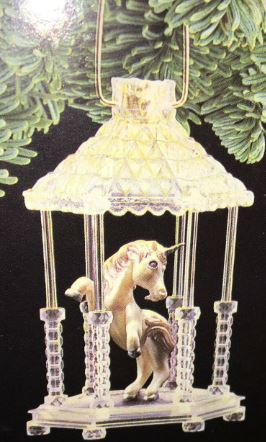 This ornament features a shimmering unicorn inside a lighted, crystal gazebo.