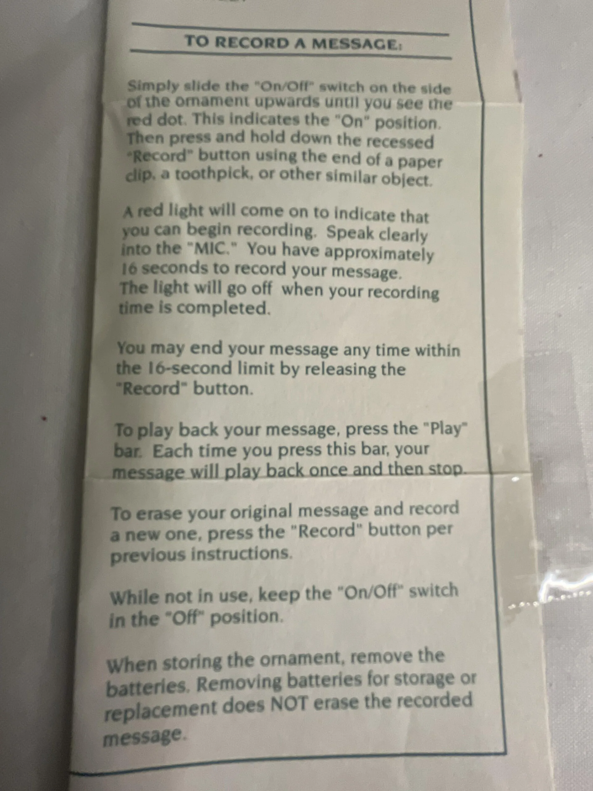 Record your own Christmas message on this ornament. Complete, simple-to-follow instructions are enclosed.