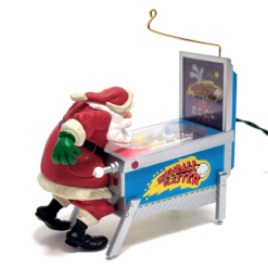 Santa is racking up points as he plays this nostalgic pinball machine.