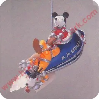 A unique ornament – Goof’s hungry, and he thinks he’s found the ideal place to cook lunmch. Of course, he relies on his pal Mickey to keep him from going overboard! This merry scene is sculpted and painted in the classic styling of the 1920’s and 1930’s when Walt Disney’s anitmated films portrayed Mickey and his friends with expressive pie-shaped eyes.