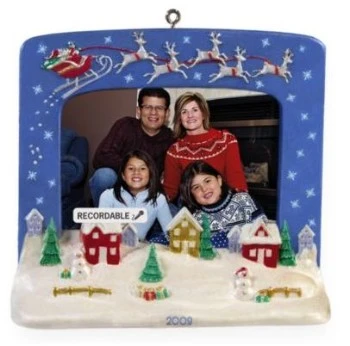 Personalize this ornament to make it extra special. Add your own photo and record your own voice message. The ornament is dated “2009”