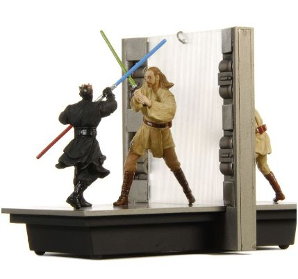 This 2009 Hallmark Keepsake Magic ornament features light and sound. Celebrate the 10th Anniversary of Star Wars: A Phantom Menace with this light saber scene.
