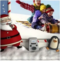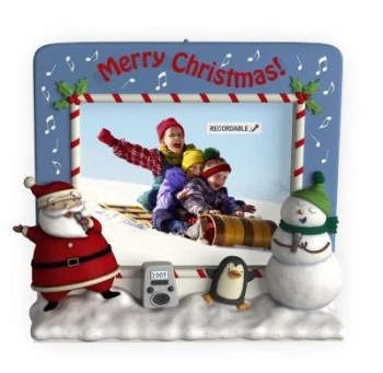 Personalize this ornament to make it extra special. Add your own photo and record your own voice message. Your message will play after the song “We Wish You a Merry Christmas”