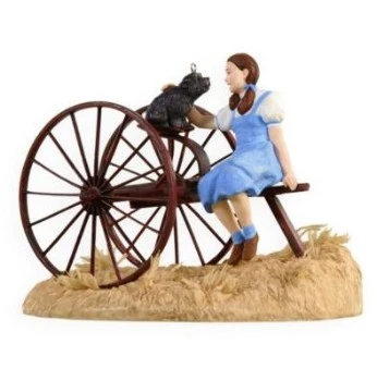 This 2009 Hallmark Keepsake ornament features Dorothy and Toto. The ornament plays the timeless classic from the film, “Over the Rainbow”