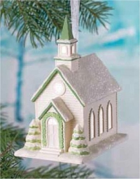 The whole look to the ornament, even without lights is peaceful, pretty, & inviting. A real country church.