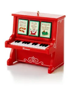 Love to hear the music play on this piano. All you have to do is press one of the tabs just above the keyboard and you will hear a Christmas song being played. Great music too. And the red is quite pretty as well.