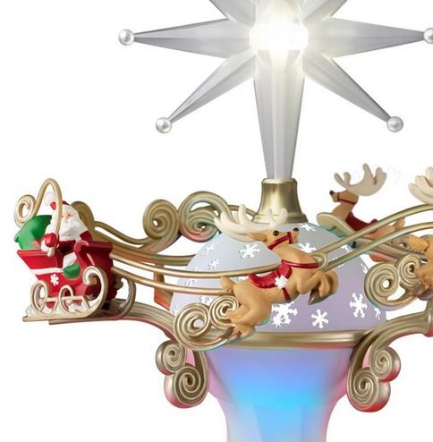 With sleigh bells jingle-jangling, this magical tree topper plays Here Comes Santa Claus and projects swirling snowflakes on to the ceiling. Oh, what a beautiful sight, indeed.