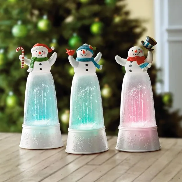 water and light show synchronized to two Christmas favorites. A perfect addition to your mantel or tabletop.Just press the button to start the show. Synchronized water and light show to “Jolly Old St. Nicholas” and “Here we go a-Wassailing.”