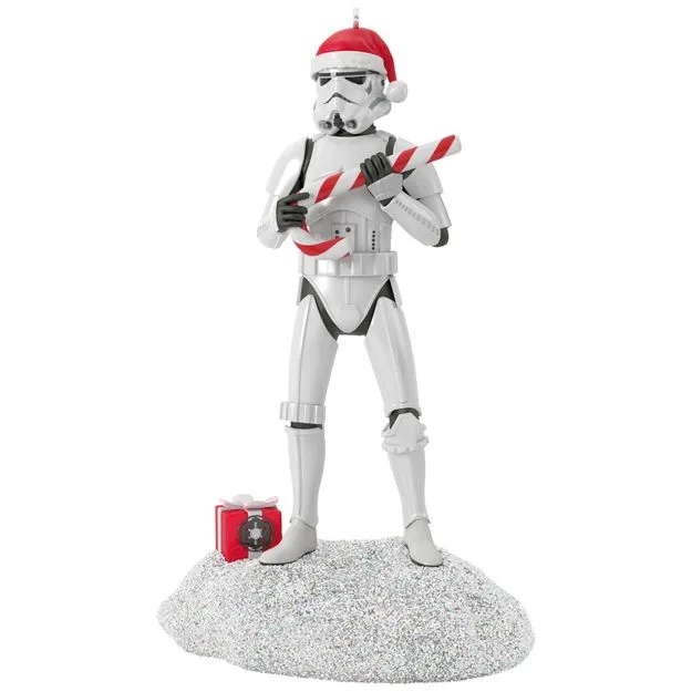 Condition: New, Mint Ornament in Mint Box It’s not another drill. Guarding presents from sneaky little hands is a full-time job for this festive Stormtrooperâ„¢. Just hang this Christmas ornament near the presents you want to protect, and turn it on. When it senses movement near the gifts, the Stormtrooperâ„¢ says warning messages that Star Warsâ„¢ fans will love. Requires 2 LR44 batteries, included. (Purchase replacement batteries)