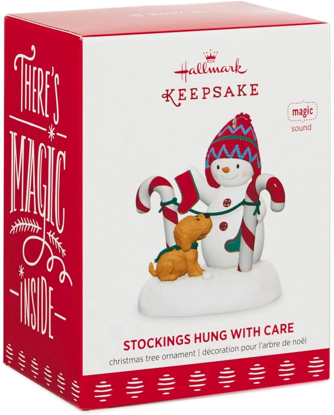 featuring a snowman decked out in a winter cap, with a plush brown puppy