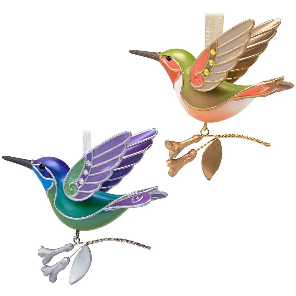 Originally offered as a mystery ornament – each sealed box held either a gold or green hummingbird.