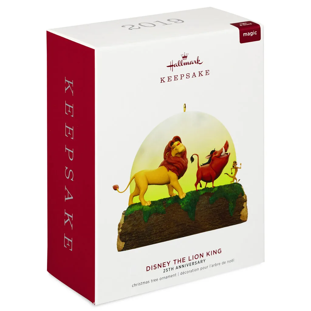 Make it a worry-free holiday season this year! Press the button on this fun Christmas tree ornament to play a clip of “Hakuna Matata” and see the scene light up as Timon, Pumbaa and Simba strut their carefree attitude across a moss-covered log. Fans of “The Lion King” will treasure this commemorative decoration for the 25th anniversary of the Disney animated classic. Light and sound features are battery-operated.