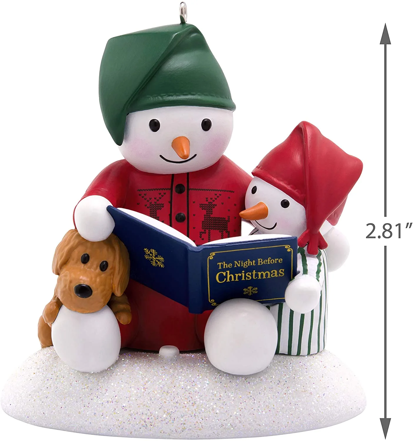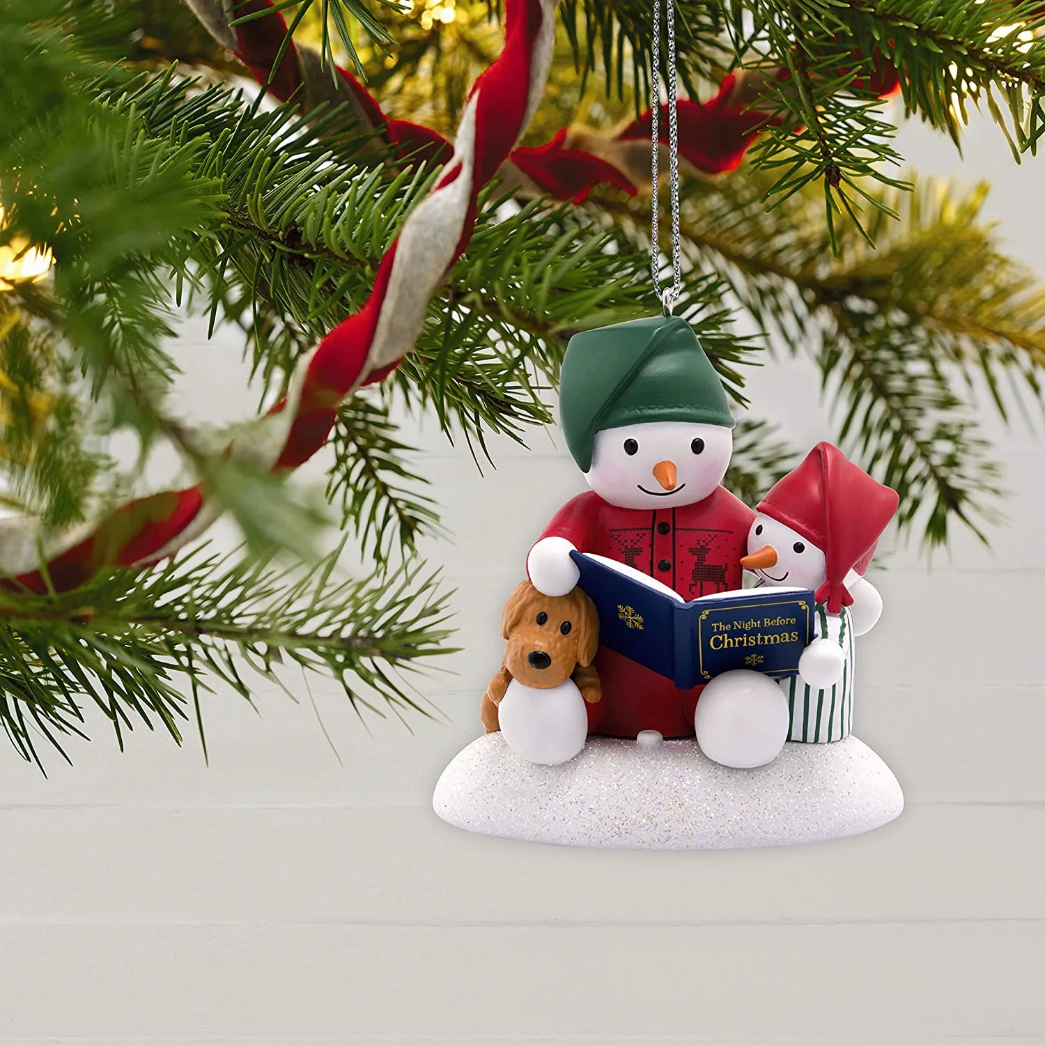 Cherish the traditions you create—like reading a Christmas story every year with your little ones. This Story Time Snowman Christmas tree ornament is a miniature version of our singing snowman stuffed animal. Featuring a pair of snowmen and their dog reading a story together, this sweet decoration plays a fun version of “We Wish You a Merry Christmas.”