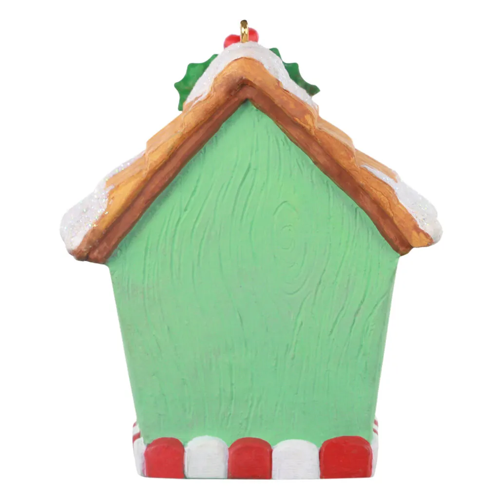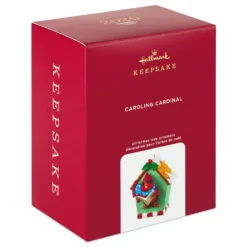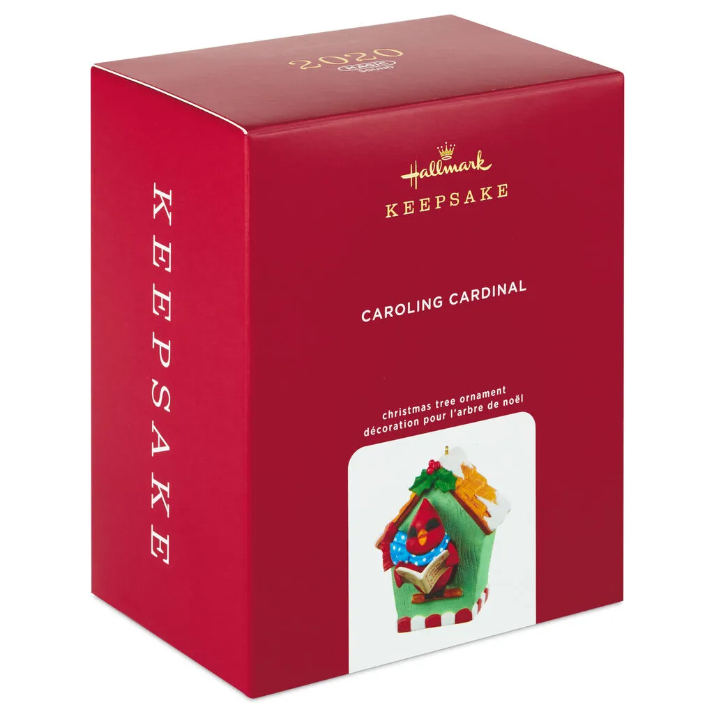 Send holiday spirits soaring with this cute Christmas tree ornament. Dressed in a polka-dotted scarf, this adorable red cardinal is perched outside his festive birdhouse—topped with a dusting of glittery snow—to “sing” his tweets and chirps along with the music of “Here We Come a-Caroling” (battery-operated).