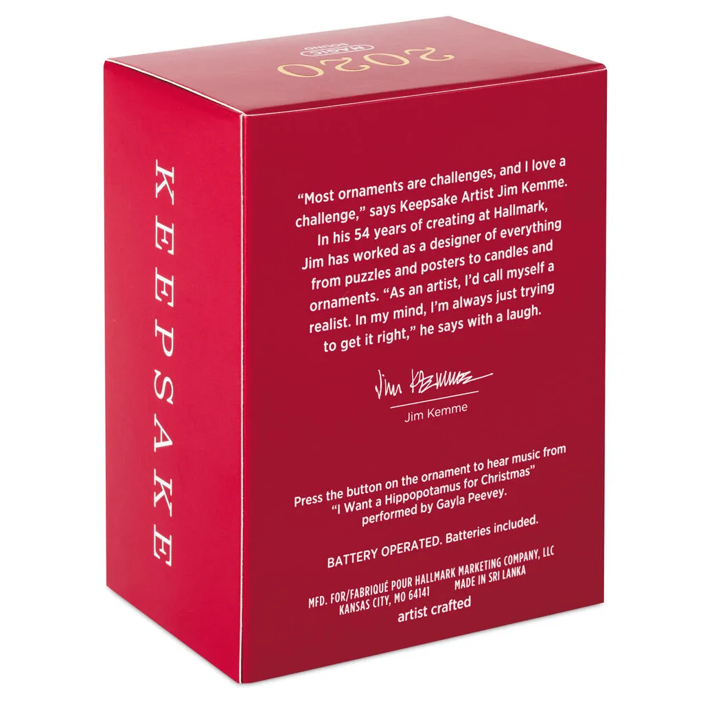 - Magic Sound Christmas tree ornament. Press the button on the ornament to hear music from “I Want a Hippopotamus for Christmas” performed by Gayla Peevey.
