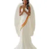 This beachy Black Santa Claus Christmas tree ornament holds a starfish in one hand and a seashell-covered wreath in the other. Wearing a teal fur-trimmed coat with glittery accents, this striking decoration radiates the serenity of sea breezes along the ocean’s shore. The scroll in his pack carries a message that reminds us of the peace and tranquility of the season.