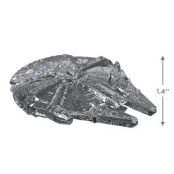 In 1996, Hallmark debuted its very first Star Wars Keepsake Ornament. Celebrate the silver anniversary of that milestone release with this premium metal Christmas tree ornament of Han Solo’s iconic Corellian freighter, the Millennium Falcon, complete with a fabulous shiny chrome finish.