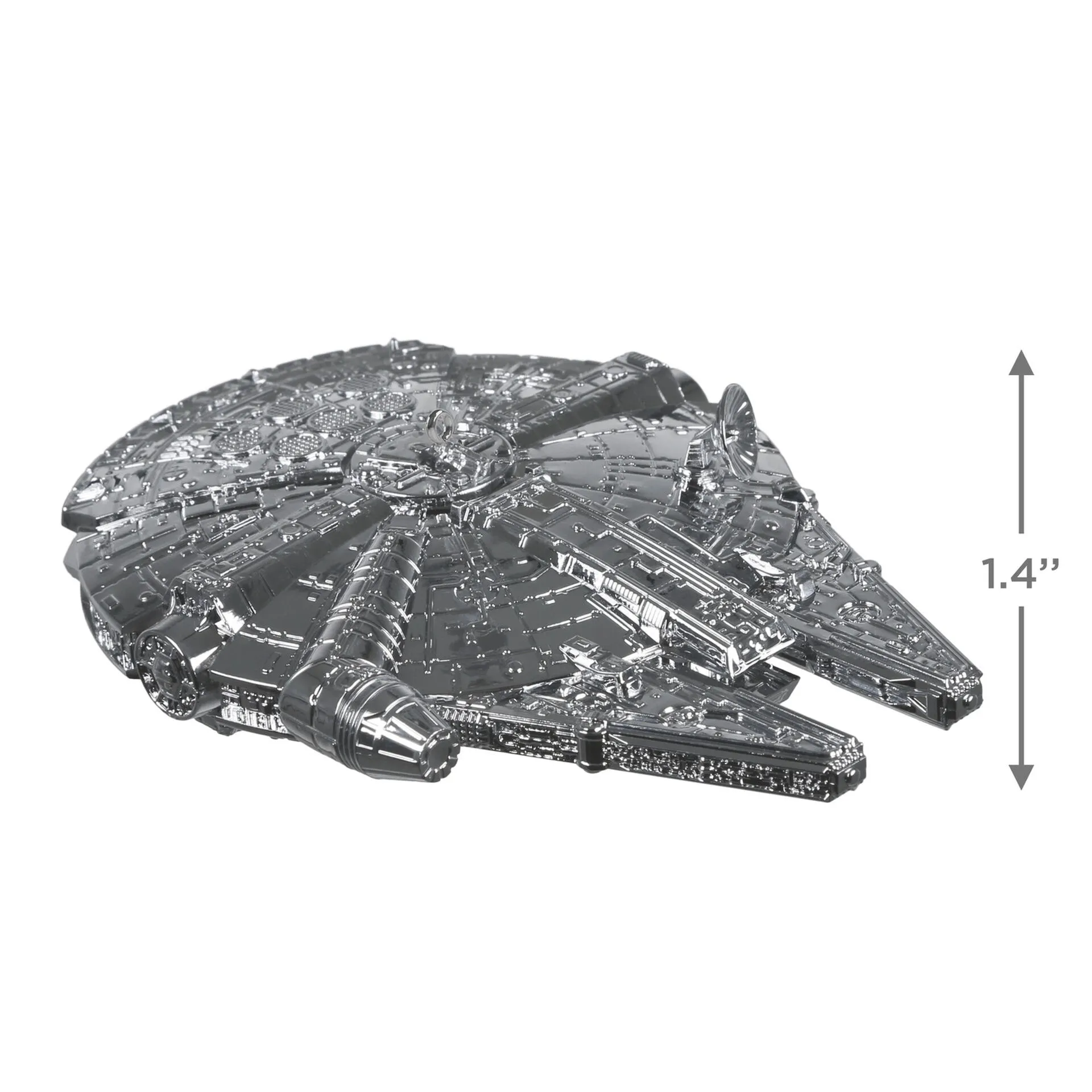 In 1996, Hallmark debuted its very first Star Wars Keepsake Ornament. Celebrate the silver anniversary of that milestone release with this premium metal Christmas tree ornament of Han Solo’s iconic Corellian freighter, the Millennium Falcon, complete with a fabulous shiny chrome finish.