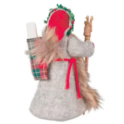 This handsome Santa Claus Christmas tree ornament holds a carved staff in one hand and a fruit-filled basket in the other. Wearing a rustic fur-trimmed coat, this striking decoration radiates the serenity of nature. The scroll in his pack carries a message that reminds us of the beauty of the season.