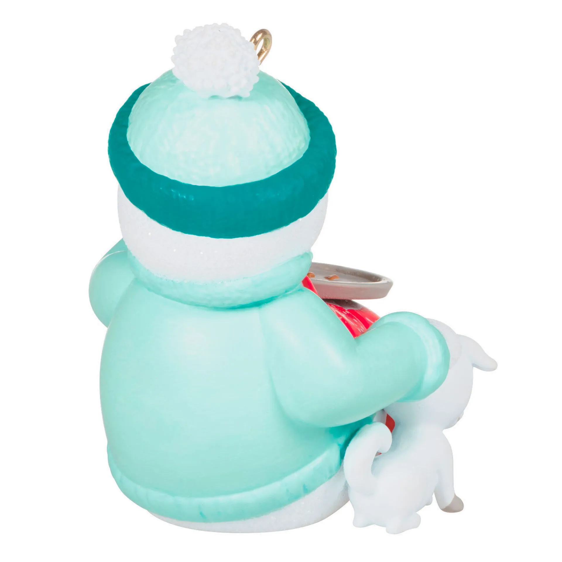 Share your love for feel-good entertainment when you hang this charming Christmas tree ornament. Cuddled up with a blanket and (mostly eaten) plate of cookies, this sparkly snowman will spread warm fuzzies all season long. The festive decoration makes a sweet gift for anyone who can’t get enough of those heartwarming holiday Hallmark Channel movies and happy endings.
