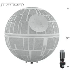 That’s no moon! Add unforgettable moments from Star Wars: A New Hope to your holiday celebrations with this Death Star tree topper that features music from the triumphant “Star Wars: Main Title.” Plug it into the included power adapter for constant illumination, then press the button—either on the included remote control resembling Darth Vader’s lightsaber hilt or on the bottom of the tree topper—to start a sound and light show. Connect one or more of the Star Wars: A New Hope Storytellers ornaments—C-3PO and R2-D2, Luke Skywalker, Obi-Wan Kenobi (each sold separately)—to unlock additional performances that you can’t access with the ornaments alone!